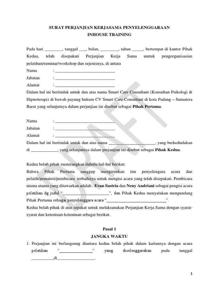 Surat Perjanjian Kerja Sama Inhouse Training Pdf