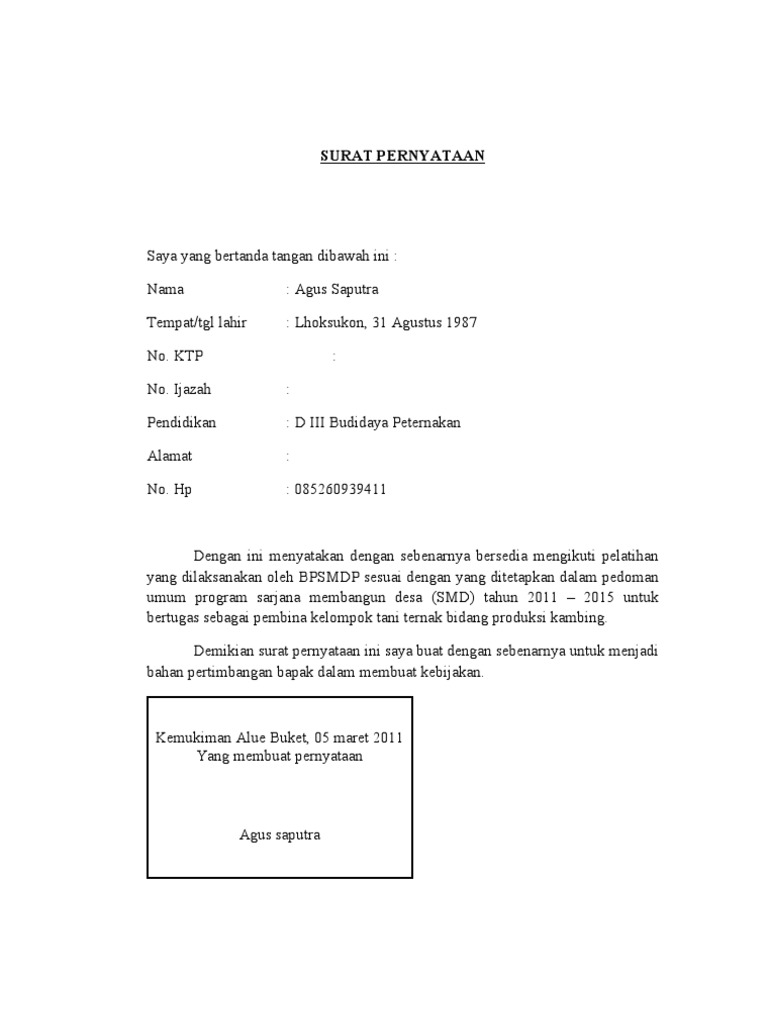 Surat Pernyataan Bersedian Mengikuti Pelatihan Pdf